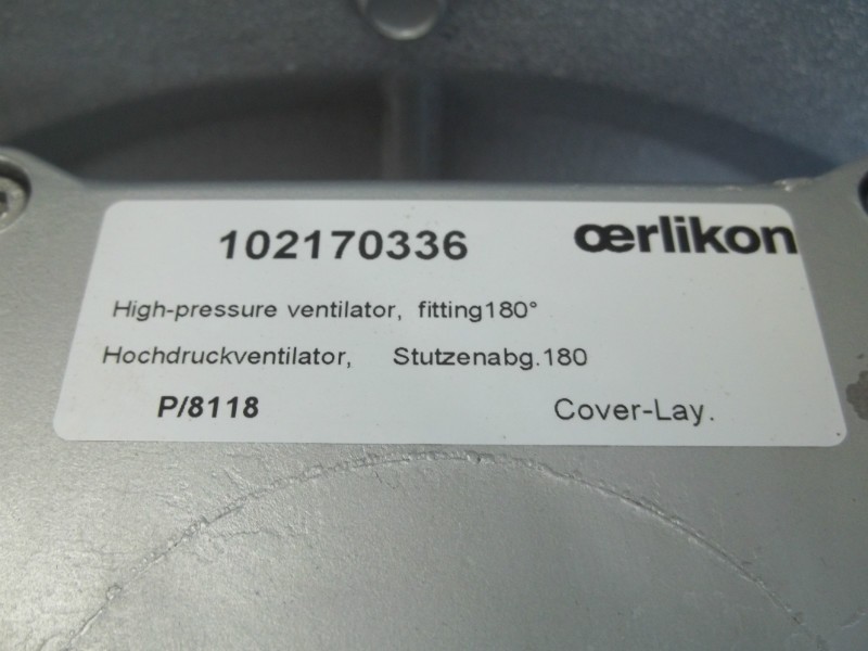 - Oerlikon part # 102170336. High pressure ventilator, fitting 180 degree. (Hochdruckventilator, Stutzenag. 180)