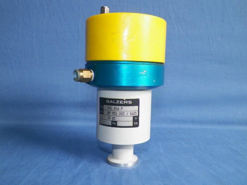 Balzers EVL 016 P Vacuum Valve, No.: BP V51 002/0577, Flange connection: DN 16 ISO-KF, Conductance for molecular flow: 3 l/s, Bakeout temperature - Housing 150 deg C, Drive - 80 deg C, Materials housing - Al-Profil, 3.2315, 24 DC.