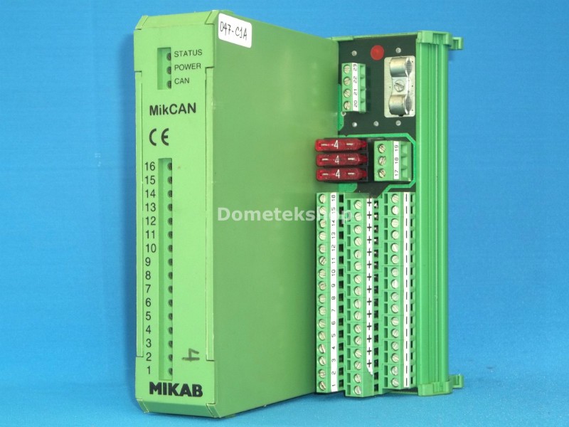 Mikab CAN bus module with 8 digital inputs and 8 digital outputs.