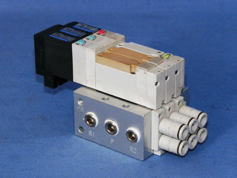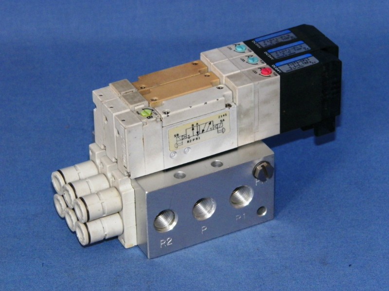 Valve block consisting of aluminum base (Koganei F10M3AJ) + 2 x airvalve F10T1-PL3 + 1 x airvalve F10T2-PL2