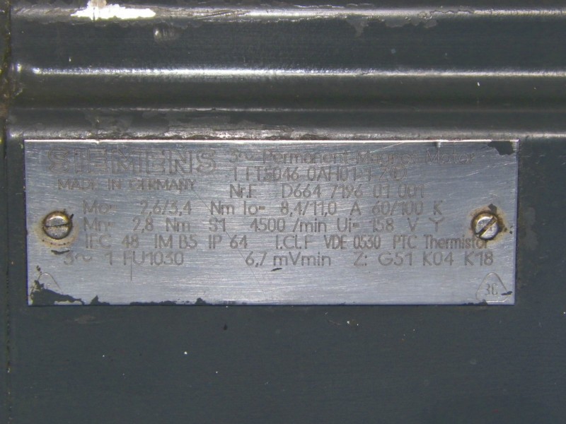 Siemens type 1FT5046-0AH01-1-Z permanent magnet servo motor.
