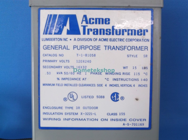 Acme Transformer T-1-81058 0.50 KVA