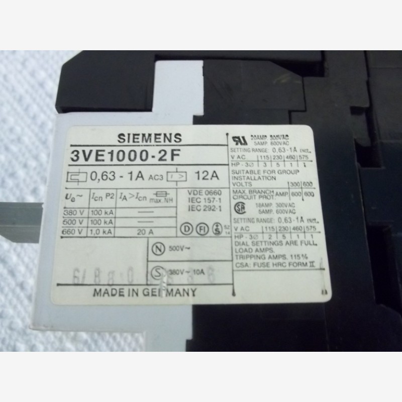 Siemens 3VE1000-2F, 0.63-1A, 12A