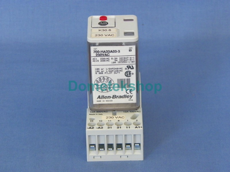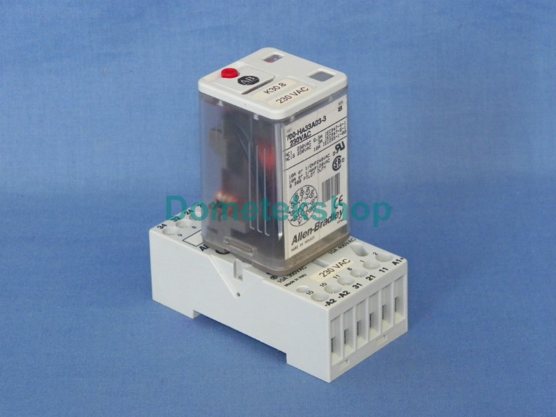 Allen Bradley 700-HA33A03-3 relay for 230 VAC with Allen Bradley base 700-HN203 (HN 203).