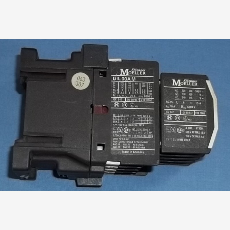 Klockner Moeller DIL 00AM with Klockner Moeller 22 DIL M Contactor. 230V, 50Hz, 240V, 60Hz.