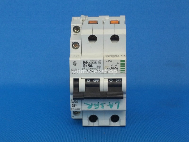 Moeller FAZN C32 2 POLE 32 AMP 480 VAC circuit breaker with NHI11 FAZ.