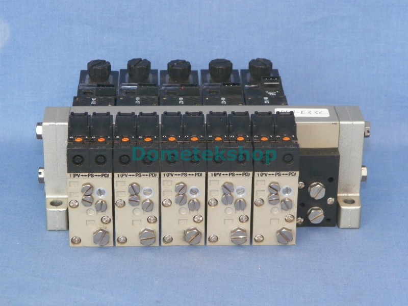SMC Vacuum switch manifold for 6 vacuum switches of 20 mm width. Manifold is complete with