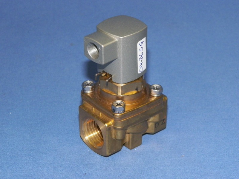 Air operated media valve (fluid or gas) with solid brass body.