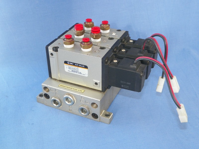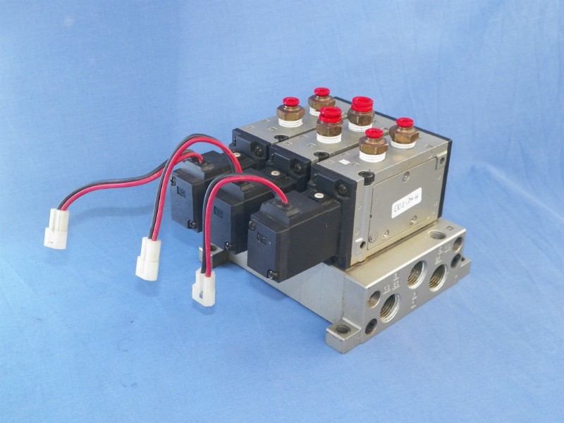 SMC manifold consisting of 3 x NVFS3130-5G-02T with base.