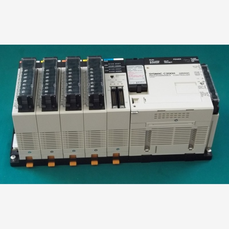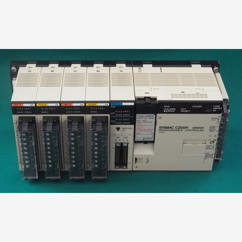 Complete PLC OMRON type SYSMAC C200H programmable controller CPUO1, C200H-MR831, IM212, 0C222 and MD215. Looks like new.